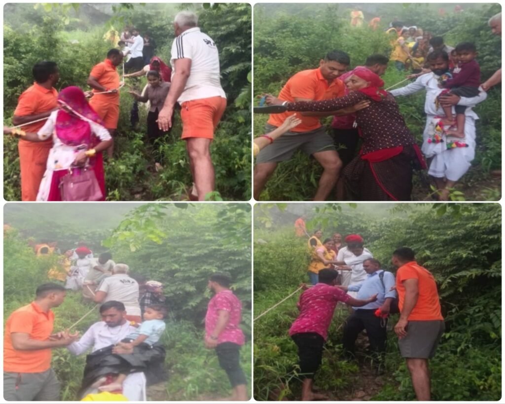 टीम के जवानों अर्जुनराम, संजय मेहरा, भैराराम, भगवानराम, महेंद्र राणा, दिनेश कुमार और रोहिताश्व ने तुरंत बचाव अभियान शुरू किया। उन्होंने मंदिर से नीचे तक एक मजबूत रस्सी बांधी और एक-एक करके सभी 290 दर्शनार्थियों को सुरक्षित नीचे उतारा। यह अभियान दोपहर 1 बजे शुरू हुआ और शाम 5 बजे तक सफलतापूर्वक पूरा कर लिया गया।