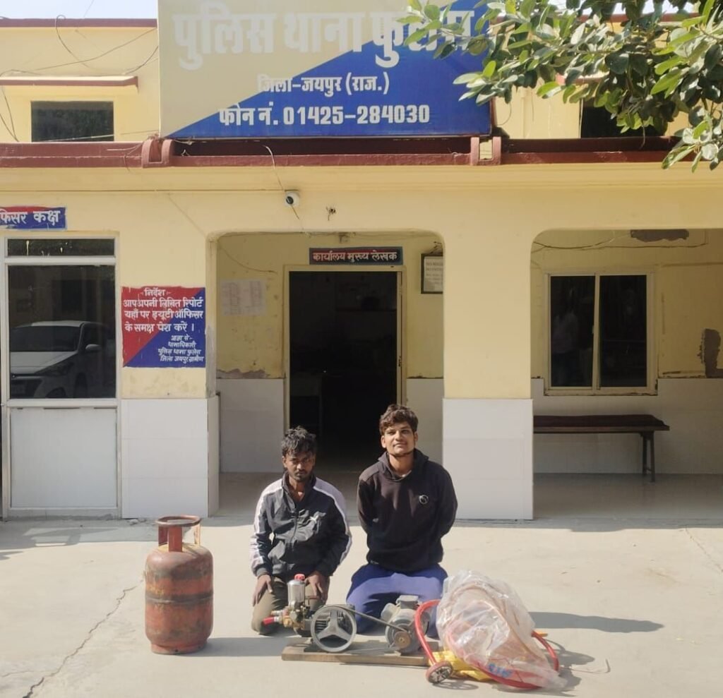 पुलिस थाना फुलेरा ने चोरी की वारदात का खुलासा कर सिर्फ 24 घंटे में दो शातिर चोरों राजेन्द्र उर्फ राजू चौधरी एवं रोहित राय को गिरफ्तार कर लिया। पुलिस ने आरोपियों के कब्जे से चोरी हुआ सामान— वाशिंग मशीन की बड़ी मोटर, गैस चूल्हा और एक गैस सिलेंडर बरामद कर लिया है।