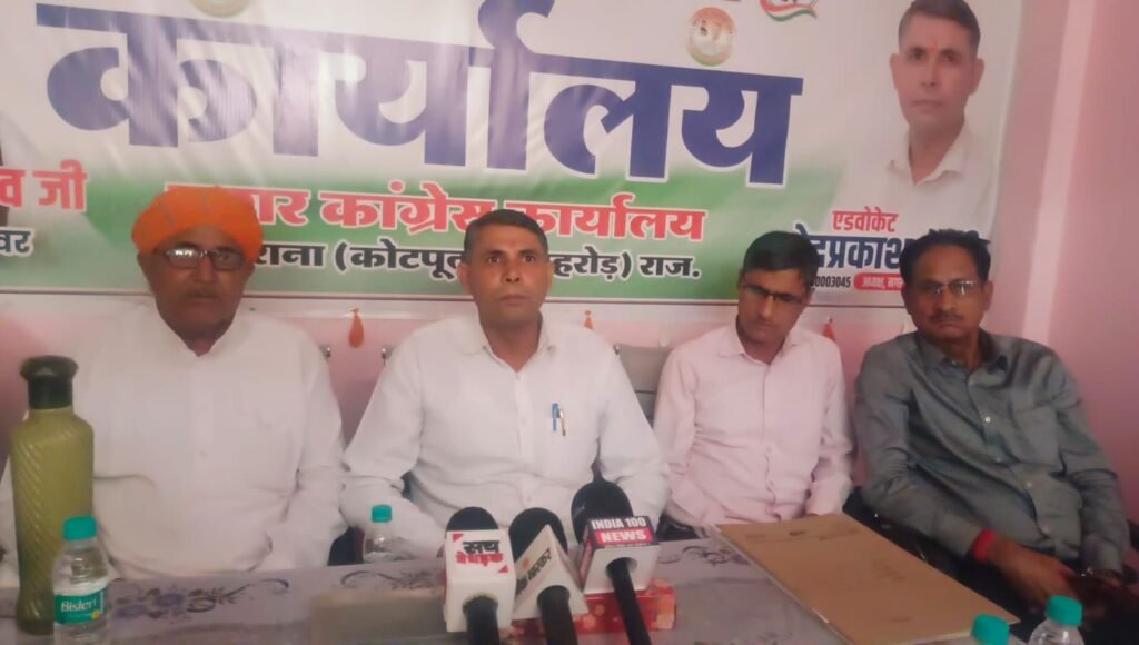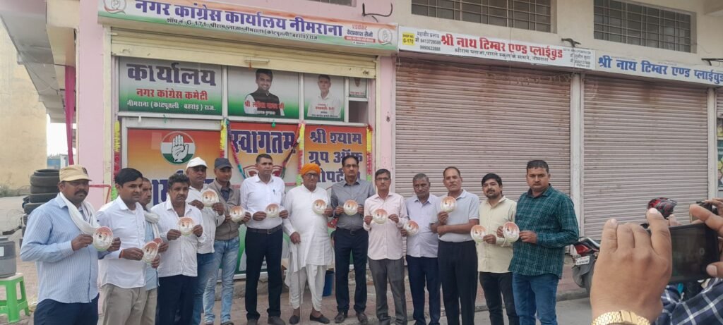 मरुधर हिंद न्यूज (रमेशचंद्र) नीमराना। नगर कांग्रेस कमेटी नीमराना की ओर से बुधवार को श्रीराम प्लाजा बाजार स्थित कार्यालय पर एक बैठक एवं प्रेस कॉन्फ्रेंस आयोजित की गई। कार्यक्रम की अध्यक्षता नगर अध्यक्ष एडवोकेट वेदप्रकाश सैनी ने की। बैठक में नीमराना नगरपालिका क्षेत्र की मूलभूत सुविधाओं की बदहाल स्थिति पर गहरी चिंता जताते हुए कांग्रेस पदाधिकारियों ने प्रशासन पर लापरवाही और उदासीनता के गंभीर आरोप लगाए।