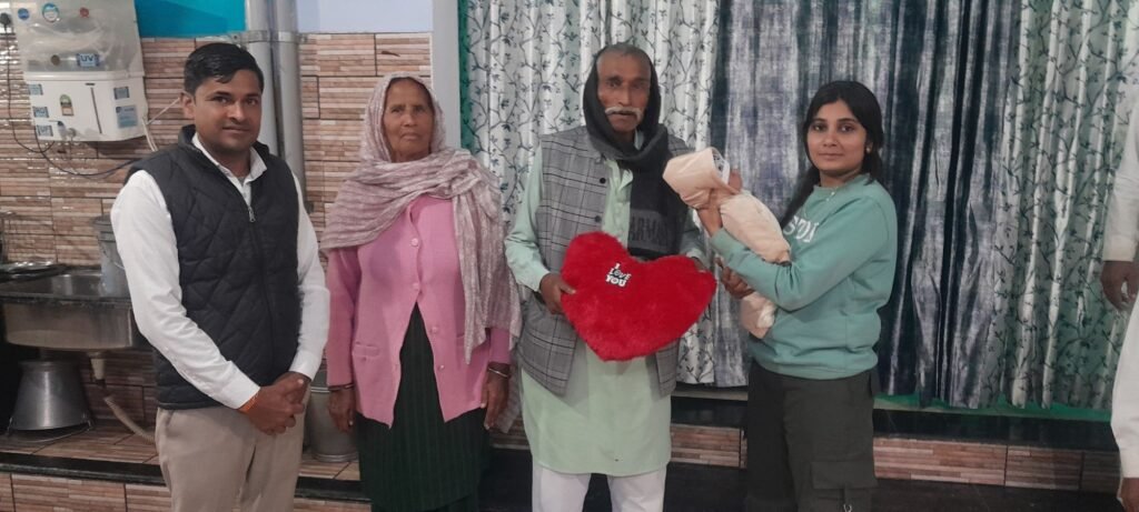 मरुधर हिंद न्यूज (रमेशचंद) नीमराना नगरपालिका के गांव तेली वाली ढाणी कुंदनसिंहपुरा में जन्मी बेटी कयारा पुत्री लोकेश यादव का आज उमंग उत्सव बड़े ही धूमधाम से मनाया गया। कार्यक्रम का आयोजन नगर कांग्रेस अध्यक्ष वेद प्रकाश सैनी के नेतृत्व में किया गया, जहां बेटी के दादा-दादी को फूल माला पहनाकर, स्मृति चिन्ह देकर एवं बच्चे के लिए खिलौने देकर सम्मानित किया गया।