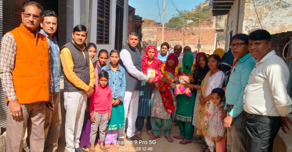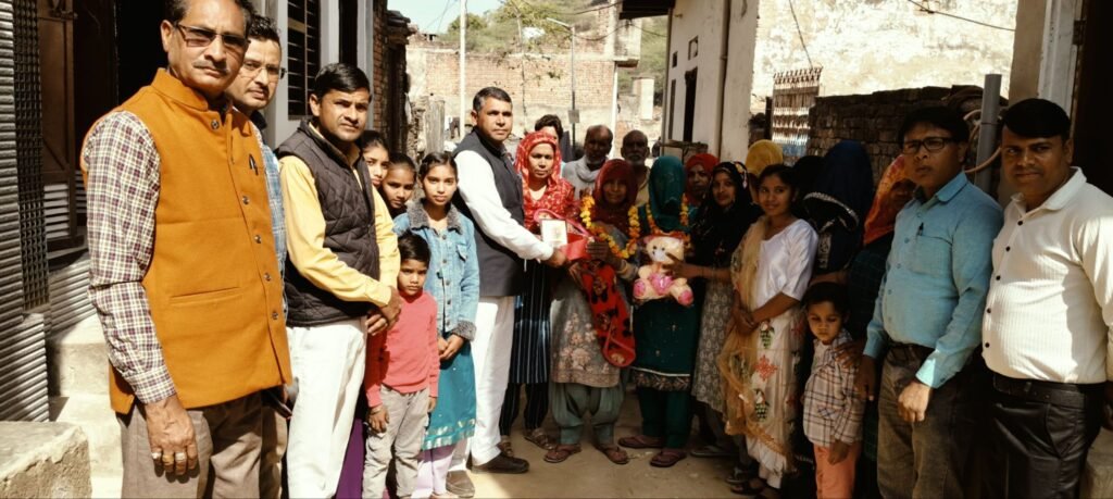 मरुधर हिंद न्यूज (रमेशचंद) नीमराना के सिलारपुर गांव में जन्मी बेटी नव्या पुत्री दीपक का आज उमंग उत्सव बड़े ही धूमधाम से मनाया गया। कार्यक्रम का आयोजन नगर कांग्रेस अध्यक्ष वेद प्रकाश सैनी के नेतृत्व में किया गया, जहां बेटी के दादा-दादी को फूल माला पहनाकर, स्मृति चिन्ह देकर एवं बच्चे के लिए खिलौने देकर सम्मानित किया गया।
