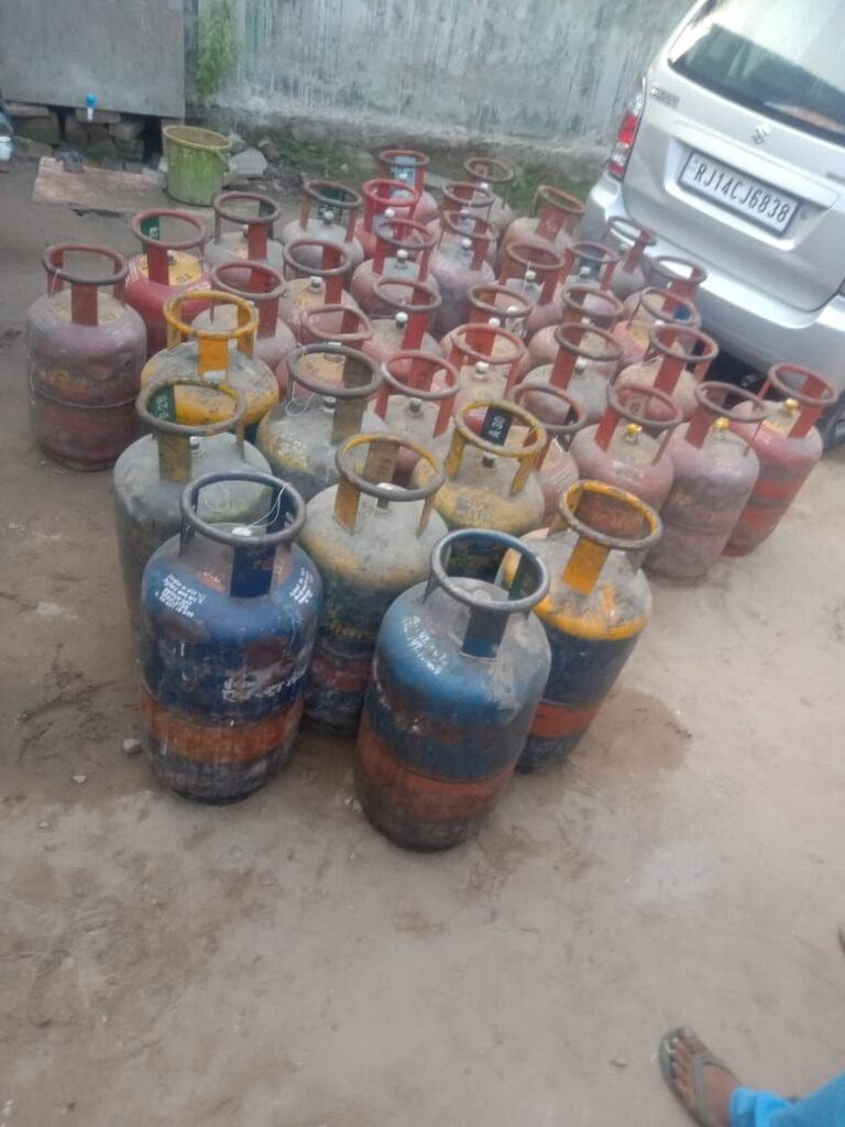 इसी प्रकार पुलिस थाना श्याम नगर एवं जिला रसद विभाग की संयुक्त टीम ने शक्ति नगर, जयपुर स्थित एक मकान पर छापा मारकर 40 गैस सिलेंडर और रिफिलिंग उपकरण बरामद किए।