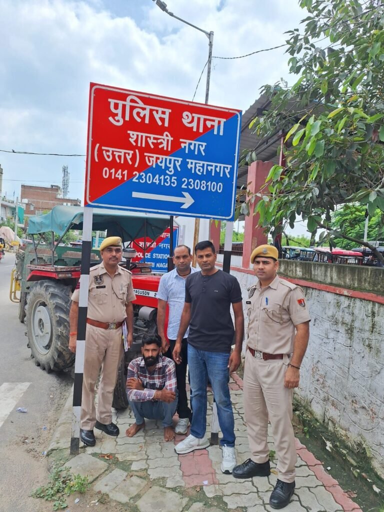 जयपुर। सीएसटी (क्राइम ब्रांच) आयुक्तालय जयपुर ने थाना शास्त्रीनगर पुलिस के सहयोग से ट्रैक्टर चोरी के मामले का खुलासा किया है। कार्रवाई के दौरान पुलिस ने शातिर ट्रैक्टर चोर पृथ्वीराज गुर्जर पुत्र रामधन गुर्जर (उम्र 24 वर्ष, निवासी निम्बी, थाना जमावारामगढ़, जिला जयपुर ग्रामीण) को गिरफ्तार किया।