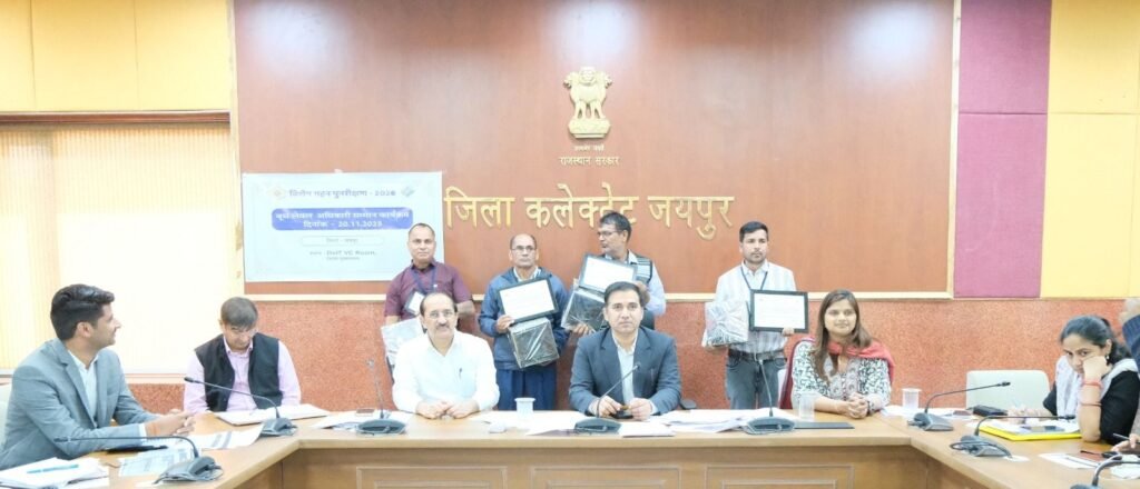 जयपुर, 20 नवंबर। भारत निर्वाचन आयोग द्वारा विशेष गहन पुनरीक्षण कार्यक्रम के तहत जयपुर जिले में परिगणना कार्य प्रगति पर है। जिला निर्वाचन अधिकारी डॉ. जितेन्द्र कुमार सोनी ने गुरुवार को कलेक्ट्रेट सभागार में शत प्रतिशत डिजिटलीकरण का लक्ष्य हासिल करने वाले 4 बीएलओ को सम्मानित किया।