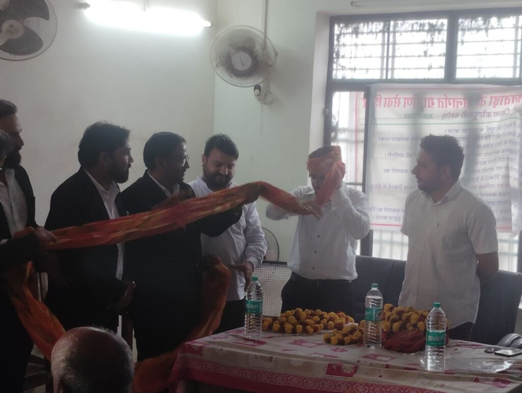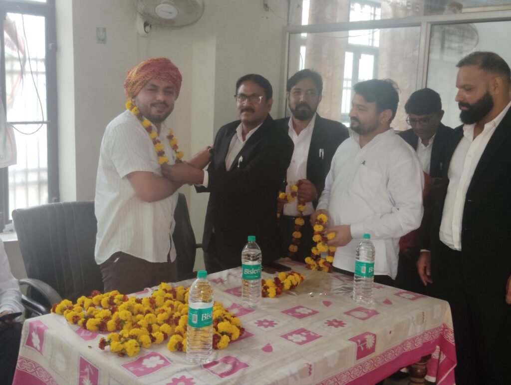 अधिवक्ताओं ने माल्यार्पण व साफा पहनाकर किया सम्मान