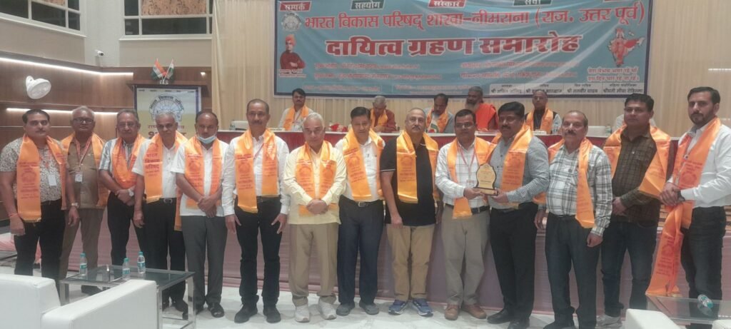 मरुधर हिंद न्यूज (रमेशचंद्र) नीमराना में जयपुर हाईवे पर दूघेड़ा के पास एक होटल में शनिवार रात को भारत विकास परिषद शाखा नीमराना का दायित्व ग्रहण समारोह आयोजित हुआ। इस अवसर पर नवगठित इकाई के कार्यकारिणी सदस्यों को शपथ ग्रहण कराकर दायित्व सौंपे गए।