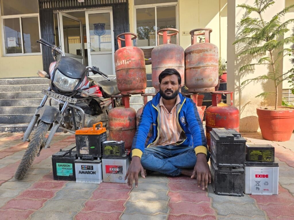 आरोपी प्रदीप सिंह, मूल निवासी सीकर व हाल श्री गणेश नगर, करधनी में रह रहा था। पुलिस ने उसके कब्जे से 7 घरेलू गैस सिलेंडर, 9 वाहन बैटरी और 1 चोरी की मोटरसाइकिल बरामद की है। मोटरसाइकिल (RJ14 VD 5574) को आरोपी ने थाना झोटवाड़ा क्षेत्र से चोरी करना कबूल किया, जिसका उपयोग वह वारदातों में करता था।