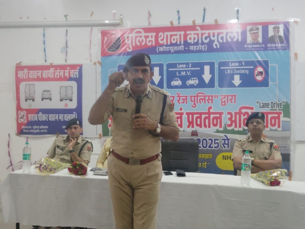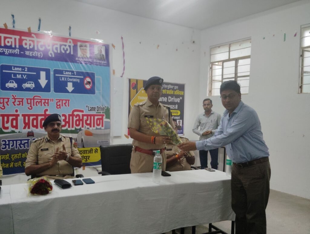राष्ट्रीय राजमार्ग-48 पर लगातार बढ़ते सड़क हादसों और अव्यवस्थित यातायात को देखते हुए सोमवार से “लेन ड्राइव” अभियान की ऐतिहासिक शुरुआत की गई। एसपी देवेंद्र कुमार विश्नोई और एएसपी वैभव शर्मा के नेतृत्व में जिलेभर की पुलिस टीम अलवर तिराहा से शाहजहांपुर तक मैदान में उतरी। अभियान का संदेश रहा – “Think Safety First” और “अपनी लेन – सुरक्षित चैन”।