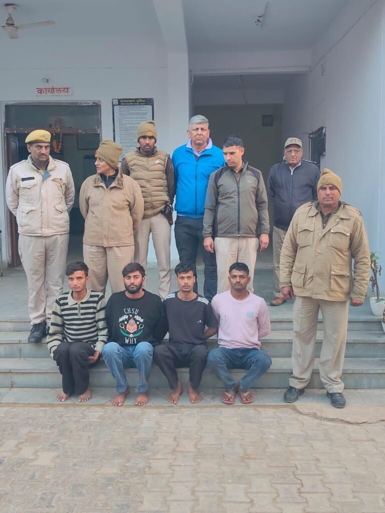 पुलिस थाना जयसिंहपुरा खोर, जयपुर उत्तर क्षेत्र में ई-मित्र कलेक्शन कर्मचारी से करीब 5 लाख रुपये की लूट की वारदात का पुलिस ने सफलतापूर्वक खुलासा कर दिया है। इस मामले में चार अभियुक्तों को गिरफ्तार किया गया है, जबकि एक नाबालिग को निरुद्ध किया गया है।