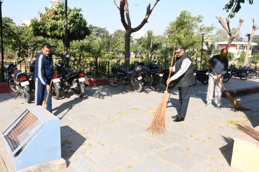 जयपुर पुलिस आयुक्त श्री सचिन मित्तल ने मंगलवार को पुलिस कमिश्नरेट परिसर में स्वयं झाड़ू लगाकर अधिकारियों व कर्मचारियों के साथ साफ-सफाई की और आमजन को स्वच्छता का संदेश दिया।