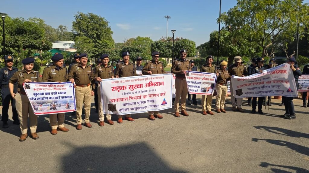 जयपुर, 13 दिसम्बर। जयपुर पुलिस आयुक्त श्री सचिन मित्तल ने सरकार के 2 वर्ष का कार्यकाल पूर्ण होने के उपलक्ष्य मे आयुक्तालय जयपुर मे 13 से 27 दिसम्बर तक दो सप्ताह का सड़क सुरक्षा अभियान के तहत यातायात पुलिस और कालिका पेट्रोलिंग यूनिट द्वारा आमजन को यातायात नियमों के प्रति जागरूकता का संदेश देने शहर के प्रमुख मार्गो पर जन जागरूकता के लिए वाहन जागरूकता रैली को पुलिस आयुक्तालय परिसर से हरी झंडी दिखा कर रवाना किया।