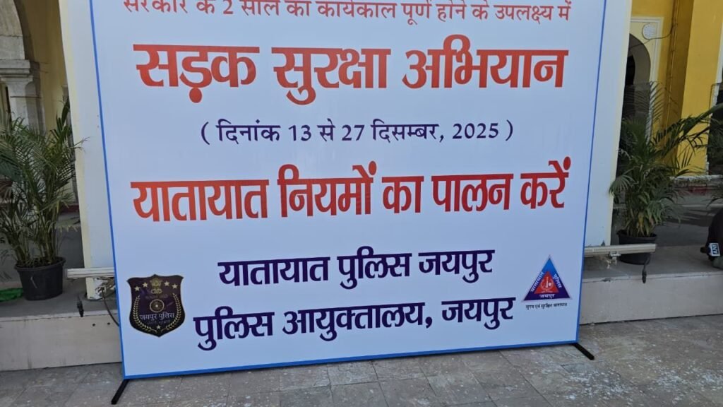 यातायात नियमों के प्रति जन जागरूकता वाहन रैली पुलिस कमिश्नरेट मैन पोर्च से रवाना होकर एम.आई. रोड, पांचबत्ती, अजमेरी गेट, रामनिवास बाग चौराहा, न्यू गेट, चौडा रास्ता, त्रिपोलिया टी प्वाईन्ट, छोटी चौपड, चांदपोल गेट, संजय सर्किल, संसारचन्द्र रोड, गवर्नमेंट हॉस्टल चौराहा, एमईएस तिराहा, आयुक्तालय परिसर तक निकाली गई।