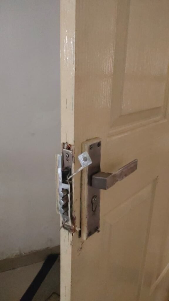 पीड़ित मनीष कौशल, जो वर्तमान में फौलादपुर नीमराना क्षेत्र की ग्रीन आर्केड सोसायटी के फ्लैट नंबर डी-004 (लैवेंडर) में किराए पर रहते हैं और मूल रूप से कानपुर निवासी हैं, ने बताया कि सोमवार और मंगलवार की मध्य रात्रि करीब 3 बजे 3 नकाबपोश बदमाश सोसायटी की सुरक्षा व्यवस्था को भेदते हुए पीछे खेतों के रास्ते से सीढ़ी लगाकर फ्लैट तक पहुंचे। बदमाश अपने साथ फावड़े जैसे धारदार हथियार लिए हुए थे।