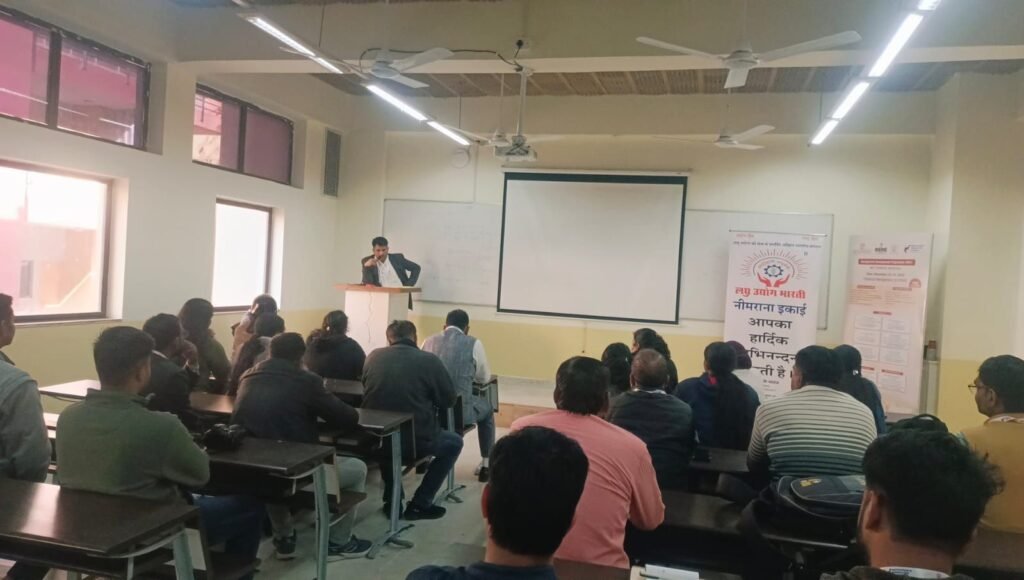 मरुधर हिंद न्यूज (रमेशचंद) नीमराना, एनआईआईटी यूनिवर्सिटी परिसर में एमएसएमई, लघु उद्योग भारती नीमराना इकाई एवं एनआईआईटी यूनिवर्सिटी के संयुक्त तत्वावधान में आयोजित पांच दिवसीय प्रशिक्षण शिविर सफलतापूर्वक जारी है। शिविर का उद्देश्य उद्यमियों, लघु एवं मध्यम उद्योगों से जुड़े लोगों तथा विद्यार्थियों को आधुनिक औद्योगिक तकनीकों, प्रबंधन कौशल एवं रोजगारोन्मुखी ज्ञान से सशक्त बनाना है।