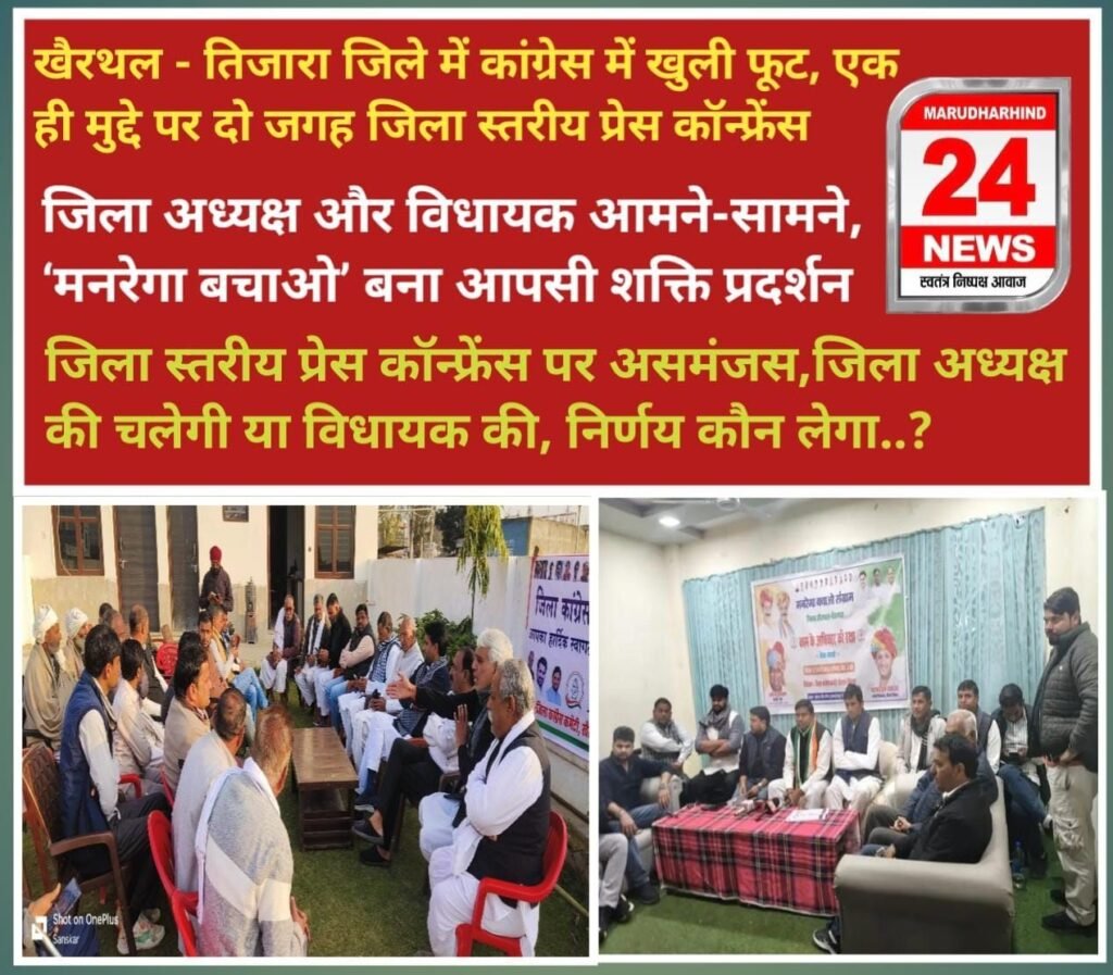 खैरथल – तिजारा जिले में कांग्रेस में खुली फूट, एक ही मुद्दे पर दो जगह जिला स्तरीय प्रेस कॉन्फ्रेंस