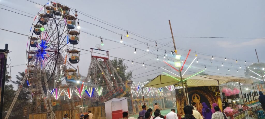 मनोरंजन के लिए विभिन्न प्रकार के झूले और दुकानें