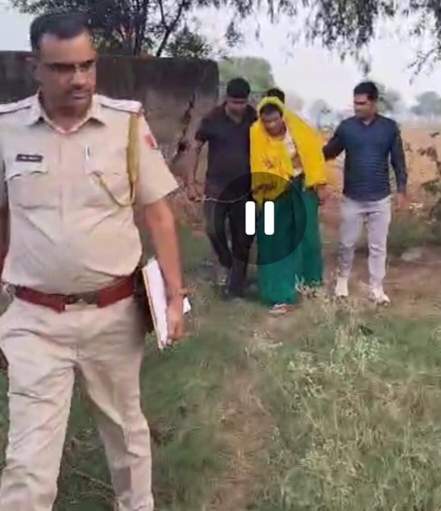 पुलिस की गिरफ्त में आरोपी व प्रेस वार्ता को संबोधित करते कोटपूतली बहरोड़ पुलिस अधीक्षक देवेंद्र कुमार बिश्नोई