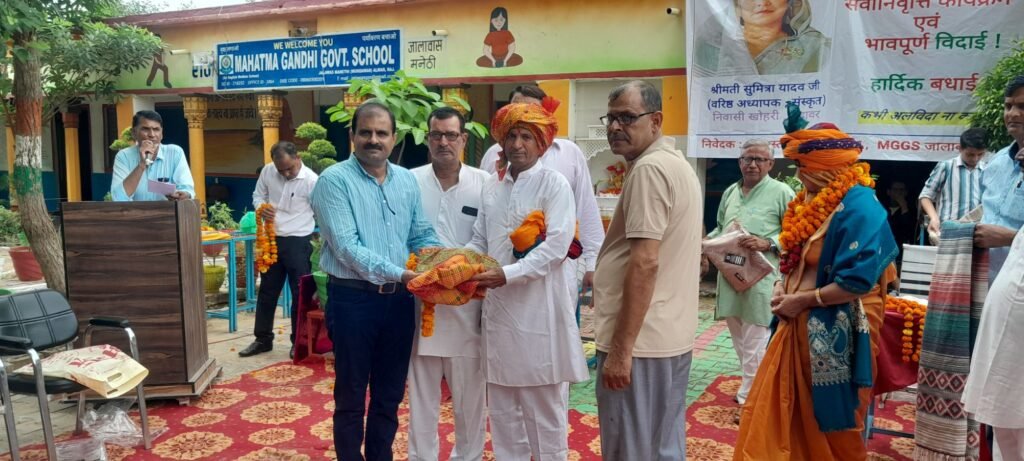 मरुधर हिंद न्यूज (रमेशचंद्र) मुंडावर उपखंड के राजकिय महात्मा गांधी सीनियर सेकेंडरी स्कूल जालावास मनेठी में वरिष्ठ अध्यापक सुमित्रा देवी ने अपने 31 वर्षों की सेवा के बाद सेवानिवृत्ति ली।