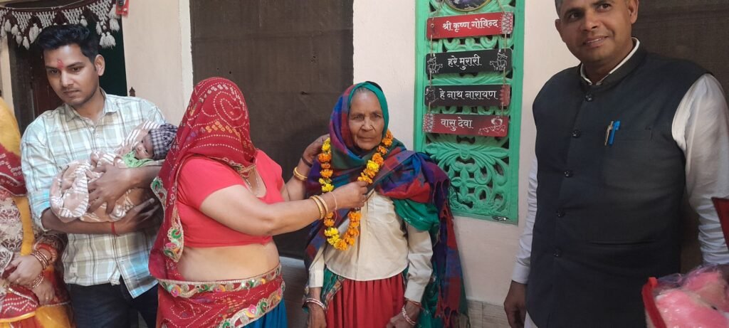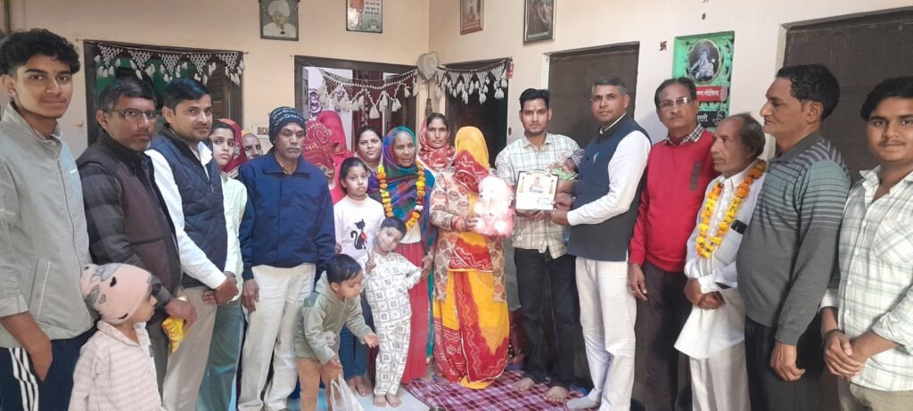 मरुधर हिंद न्यूज (रमेशचंद) नीमराना क्षेत्र में बेटियों के सम्मान और प्रोत्साहन के लिए एक सराहनीय अभियान चलाया जा रहा है। नगर कांग्रेस अध्यक्ष वेद प्रकाश सैनी द्वारा बालिका दिवस के अवसर पर शुरू की गई पहल “उमंग उत्सव” के तहत आज मोलाडिया गांव में जन्मी बेटी यशवी पिता ऐश्वर्या, माता मोनिका देवी, दादी सुशीला देवी, दादा सुरेंद्र कुमार, परदादी संजना देवी और परदादा गुरदयाल सिंह को सम्मानित किया गया।