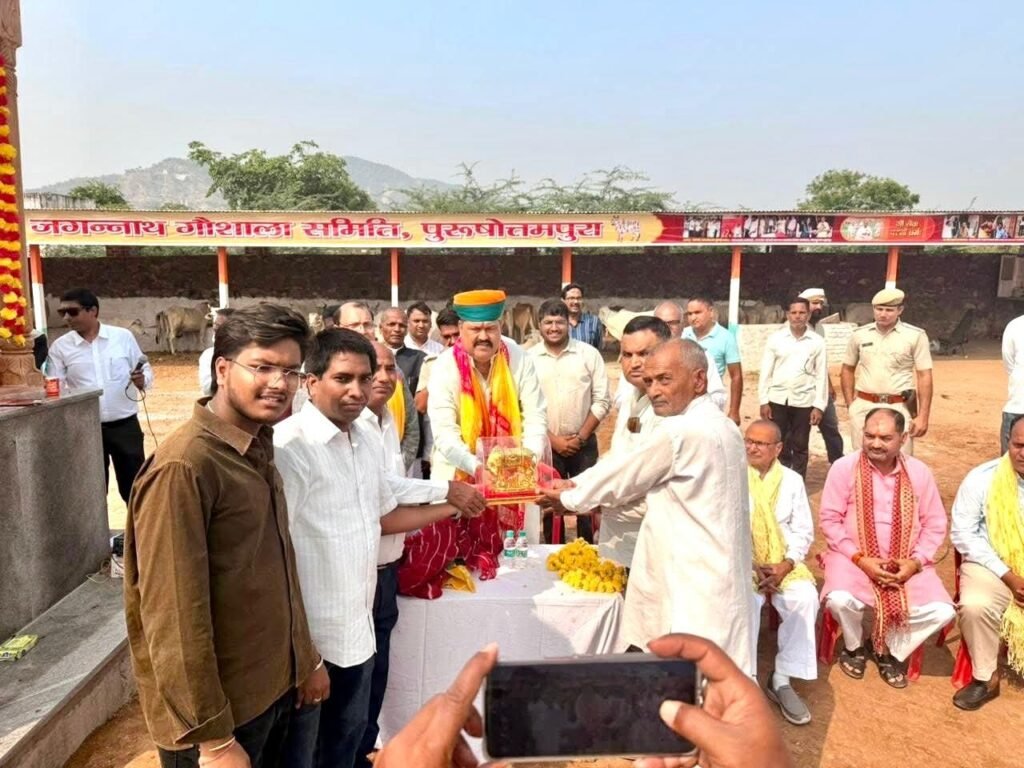 उपखण्ड क्षेत्र के पुरुषोत्तमपुरा स्थित श्री जगन्नाथ गौशाला में रविवार को संस्थापक स्वर्गीय बजरंग प्रसाद मित्तल की मूर्ति का अनावरण एवं नवनिर्मित टीन शेड का उद्घाटन समारोह आयोजित हुआ। कार्यक्रम के मुख्य अतिथि विधायक हंसराज पटेल ने श्रद्धापूर्वक मूर्ति का अनावरण किया तथा गौशाला में नई टीन शेड का फीता काटकर उद्घाटन किया।